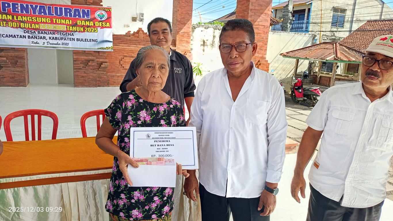 Pada hari ini Rabu tanggal 03 Desember 2025 Pemerintah Desa Banjar Tegeha, dan turut dihadiri juga oleh Staff Sosbud kecamatan banjar, dan turut juga dihadiri oleh BPD Serta Pendamping desa banjar tegeha melaksanakan pembagian BLT DD bulan Desember 2025. program ini dapat tersalurkan dengan baik tanpa adanya masalah yang timbul di Pemerintah Desa dan KPM. Kegiatan ini mendapat apresiasi dari masyarakat akan betapa penting dan bermanfaatnya bantuan BLT ini dari Pemerintah untuk membantu menunjang ekonomi masyarakat. Mereka berharap semoga masyarakat desa banjar tegeha melalui pemerintah Desa Banjar Tegeha yang bersumber dari pusat dapat memelihara fakir miskin dengan berbagai program yang diluncurkan dapat terlaksana dan tepat sasaran. Perbekel Banjar Tegeha memberikan beberapa peringatan mengenai penggunaan BLT DD agar masyarakat selama ini yang menerima bantuan agar di pergunakan sesuai peruntukan yang baik dan benar. dan pada kesempatan kali ini, perbekel banjar tegeha, Ida Bagus Komang Sistiadi juga menyampaikan kepada seluruh warga masyarakat desa banjar tegeha akan pennting nya menjaga kebersihan dan kenyamanan wilayah dessa banjar tegeha dengan mengikuti anjuran pembuangan sampah sesuai dengan ketentuan yang berlaku.