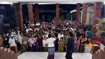 Kemudian ajik bendesa menyampaikan , ajik bendesa mengundang seluruh jajaran desa adat melalui grup wa, dan ternyata antusias nya sangat besar. Dan ajik bendesa mengusulkan pakaian untuk sarati banten, dll..